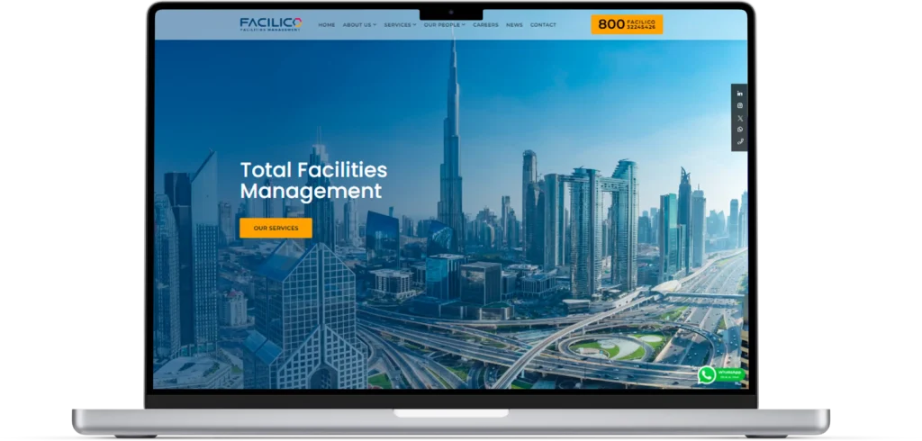 Corporate WordPress website for a leading facilities management company in Dubai, featuring a clean responsive design, service-focused navigation, lead generation forms, and SEO optimization to boost online visibility.