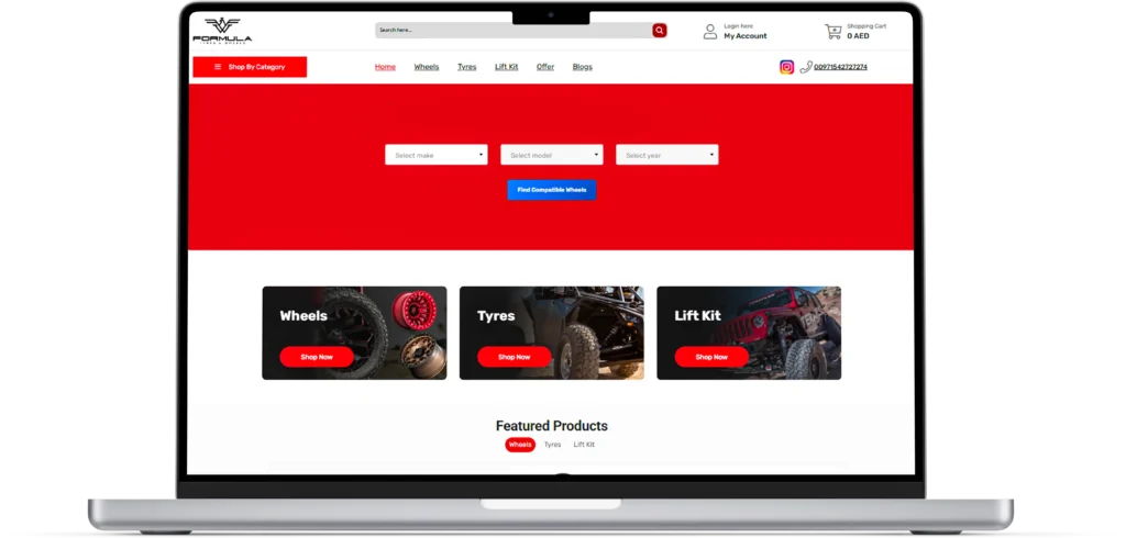 Premium automotive e-commerce site for wheels, tyres, lift kits, car wraps, and performance accessories. Developed with a clean UI, advanced filtering based on vehicle make/model, mobile-first responsiveness, and optimized for conversions and search visibility.