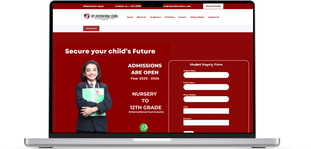 Responsive WordPress website for a private school in Hyderabad, showcasing academics, admissions, activities, and parent resources. Designed with a clean layout, mobile optimization, and SEO-friendly structure to improve visibility and engagement.